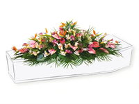 Dessus de cercueil en fleurs naturelle composé d’Anthurium rose, Strelitzia, Callas rose, Lentisque, Cymbidium blanc 12 fleurons, Cymbidium rose 12 fleurons Longueur : 1,60 m Merci de nous contacter avant de passer commande. L’exotique peut varier selon l’arrivage et la saison. Cette composition florale convient parfaitement pour les expositions du cercueil lors d’un recueillement au cours d’une cérémonie civile ou religieuse et se pose idéalement, après l’inhumation sur la sépulture. Livraison gratuite dans toute l’Ile de France, uniquement les départements 75-77-78-91-92-93-94-95 Aucune livraison hors ces départements actuellement.