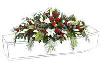 Les pompes funèbres LOIC vous proposent cette composition dessus de cercueil en fleurs naturelle, composé de Rose rouge, Lys multi blanc, Calathéa zébrina white, Lentisque, Eucalyptus Longueur : 1,60 m Cette composition florale convient parfaitement pour les expositions du cercueil lors d’un recueillement au cours d’une cérémonie civile ou religieuse et se pose idéalement, après l’inhumation sur la sépulture. Livraison gratuite dans toute l’Ile de France, uniquement les départements 75-77-78-91-92-93-94-95 Aucune livraison hors ces départements actuellement.