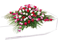 Les Pompes Funèbres LOIC vous proposent ce dessus de cercueil en fleurs fraîche composée de ose fuchsia, Dendro blanc, Gerbera fuchsia, Lys star, Lisianthus rose, Muflier rose, Lentisque. Longueur : 1,60 m Cette composition florale convient parfaitement pour les expositions du cercueil lors d’un recueillement au cours d’une cérémonie civile ou religieuse et se pose idéalement, après l’inhumation sur la sépulture. Livraison gratuite dans toute l’Ile de France, uniquement les départements 75-77-78-91-92-93-94-95 Aucune livraison hors ces départements actuellement.