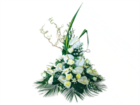 Les Pompes Funèbres LOIC vous proposent ce bouquet aux couleurs douce soigneusement sélectionnées. Cette composition florale exprime, tendresse, paix et réconfort, offrant un hommage sincère et respectueux au défunt. Diamètre: 50 cm Livraison Gratuit : 75/77/78/91/92/93/94/95