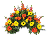 Les pompes funèbres LOIC vous proposent ce devant de cercueil 81 fleurs composé de : Rose orange, Gerbera orange, Muflier miel, Aster blanche, Solidalgo, Gerbera jaune, Lentisque long. Longueur : 80 cm Cette composition florale convient parfaitement pour les expositions du cercueil lors d’un recueillement au cours d’une cérémonie civile ou religieuse et se pose idéalement, après l’inhumation sur la sépulture. Livraison gratuite dans toute l’Ile de France, uniquement les départements 75-77-78-91-92-93-94-95 Aucune livraison hors ces départements actuellement.