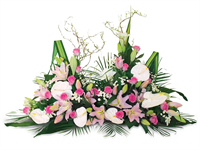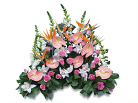 Les fleur de ce composition sont naturelles composé de Rose rose, Anthurium rose, Muflier blanc, Strelitzia, Lentisque long, Cymbidium blanc 12 fleurons Cette composition florale convient parfaitement pour les expositions du cercueil lors d’un recueillement au cours d’une cérémonie civile ou religieuse et se pose idéalement, après l’inhumation sur la sépulture. Livraison gratuite dans toute l’Ile de France, uniquement les départements 75-77-78-91-92-93-94-95 Aucune livraison hors ces départements actuellement.