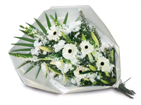 Les Pompes Funèbres vous proposent cette gerbe main elle possède la même forme que la gerbe piquée. C’est une composition florale réalisée sur un support de mousse mouillable, les fleurs bénéficient donc d’une meilleure tenue dans le temps. Tous nos bouquets sont préparés avec soin par nos fleuristes. Le bouquet accompagne la cérémonie funéraire ou peut être livré aux proches pour présenter vos condoléances. La gerbe mortuaire, lorsqu’elle est de forme allongée, se pose généralement à plat sur le cercueil ou sur la tombe le jour des obsèques. Livraison gratuite dans toute l’Ile de France, uniquement les départements 75-77-78-91-92-93-94-95 Aucune livraison hors ces départements actuellement.