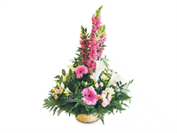 Les Pompes Funèbres LOIC vous proposent ce panier piqué en fleurs naturelles composé de Rose rose branchue, Matricaire blanc, Gerbera rose, Arums blanc, Muflier rose, Ruscus d’Italie Hauteur : 60 cm Cette composition florale convient parfaitement pour les expositions du cercueil lors d’un recueillement au cours d’une cérémonie civile ou religieuse et se pose idéalement, après l’inhumation sur la sépulture. Livraison gratuite dans toute l’Ile de France, uniquement les départements 75-77-78-91-92-93-94-95 Aucune livraison hors ces départements actuellement.