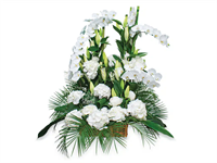 Ce panier piqué composé de Hortensia blanc, Lys multi blanc, Phalaénopsis 25 fleurons, Lentisque vous est proposé par les pompes funèbres LOIC en fleurs naturelles. Cette composition florale convient parfaitement pour les expositions du cercueil lors d’un recueillement au cours d’une cérémonie civile ou religieuse et se pose idéalement, après l’inhumation sur la sépulture. Merci de nous contacter avant de passer commande afin de s’assurer de la disponibilité de l’exotique. Livraison gratuite dans toute l’Ile de France, uniquement les départements 75-77-78-91-92-93-94-95 Aucune livraison hors ces départements actuellement.