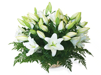 Les Pompes Funèbres LOIC vous proposent ce panier piqué en fleurs naturelles composé de Lys blanches Diamètre : 40 cm Cette composition florale convient parfaitement pour les expositions du cercueil lors d’un recueillement au cours d’une cérémonie civile ou religieuse et se pose idéalement, après l’inhumation sur la sépulture. Livraison gratuite dans toute l’Ile de France, uniquement les départements 75-77-78-91-92-93-94-95 Aucune livraison hors ces départements actuellement.