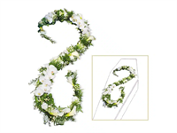 Les Pompes funèbres LOIC vous propose cette traine de fleurs composée de : Oeillet green trick, Traine de lierre, Phalaenopsis 1 fleuron, Oeillet blanc, Aster blanche, Hypericum blanc, Arums blanc, Agapanthe blanche Longueur : 2,00 m Cette composition florale convient parfaitement pour les expositions du cercueil lors d’un recueillement au cours d’une cérémonie civile ou religieuse et se pose idéalement, après l’inhumation sur la sépulture. Livraison gratuite dans toute l’Ile de France, uniquement les départements 75-77-78-91-92-93-94-95 Aucune livraison hors ces départements actuellement.