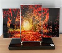 Plaque plexi sur socle, motif triptyque Forêt en Automne