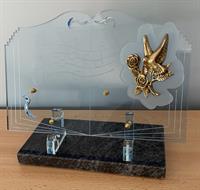 Plaque plexi sur socle, motif Musique avec Roses et Colombe