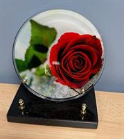 Plaque plexi sur socle forme ronde Image rose rouge Diametre plexi : 20 cm - 2 inters à choisir parmi notre sélection d’inters de plus de 100 textes. avec liens de parenté, d’amitié et de message de regret.