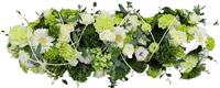 Photo non contractuelle | Raquette blanche Raquette de fleurs de saison dans les tons de blanc et de verts - Env. 70 / 80 cm - Ruban inclus avec 50 caractères max -