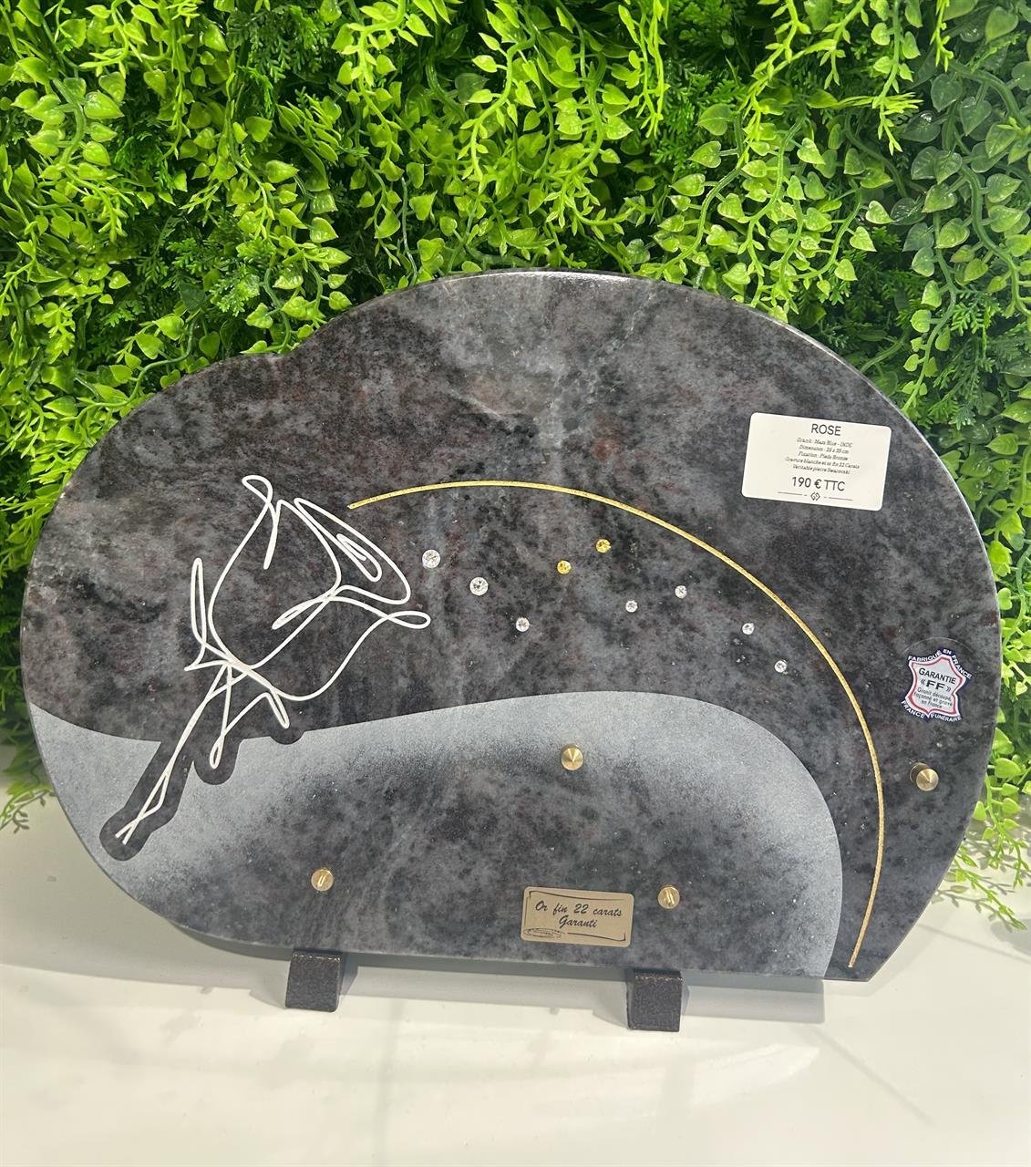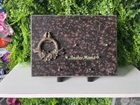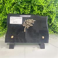 Granit : Granit Noir Dimension : 20cm*13cm Fixation : Pieds Motif : Ros en Bronze Possibilité de la personnaliser en mettant un Inter