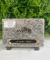 Plaque funéraire Dimension : 12.5*18 cm Granit : Rose d'Alva Bronze : Village Fixation : Sans