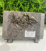 Plaque en granit Rose sur socle Motif : Bouquet de tige en Bronze Possibilité de mettre 3 inters au choix.