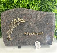 Plaque Funéraire forme spéciale Dimension : 20*13cm Motif: Oiseau sur une branche de rosier en bronze Fixation : Pieds Possibilité de la personnaliser en mettant un Inter