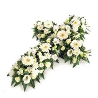 Photo non contractuelle | Croix - Grand modèle Toutes les compositions sont disponibles en différents coloris : Blanc / Rouge / Jaune & orange / Rose & violet ou autres couleurs. ( Fleurs de saison )