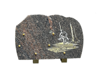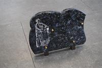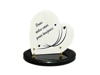 Plaque cœur blanc sur socle en granit noir 21x22cm.