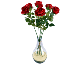 | Roses à la ligne (par 6) couleur rouge Botte de 6 roses épanouies d'env. 65 cm - Couleur rouge - Vendues sans contenant -