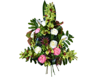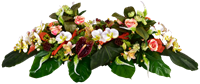 | Dessus de cercueil rose Dessus de cercueil avec roses, lys, cymbidiums et hortensias - Dimensions : 152 x 52 cm - Tonalité Rose - Possibilité de rajouter option ruban (texte à préciser lors de la commande) -
