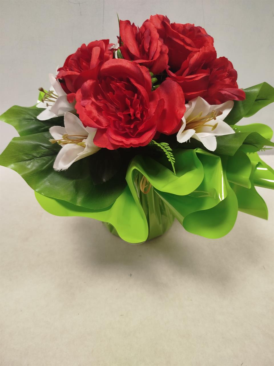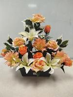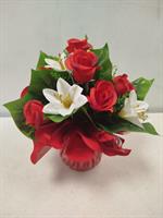 Potée de roses et lys artificielles