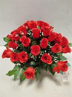 Jardinière de roses artificielles.