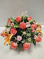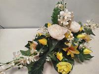 Grande composition de fleurs artificielles. Possibilité de mettre un ruban, le préciser dans la commande.