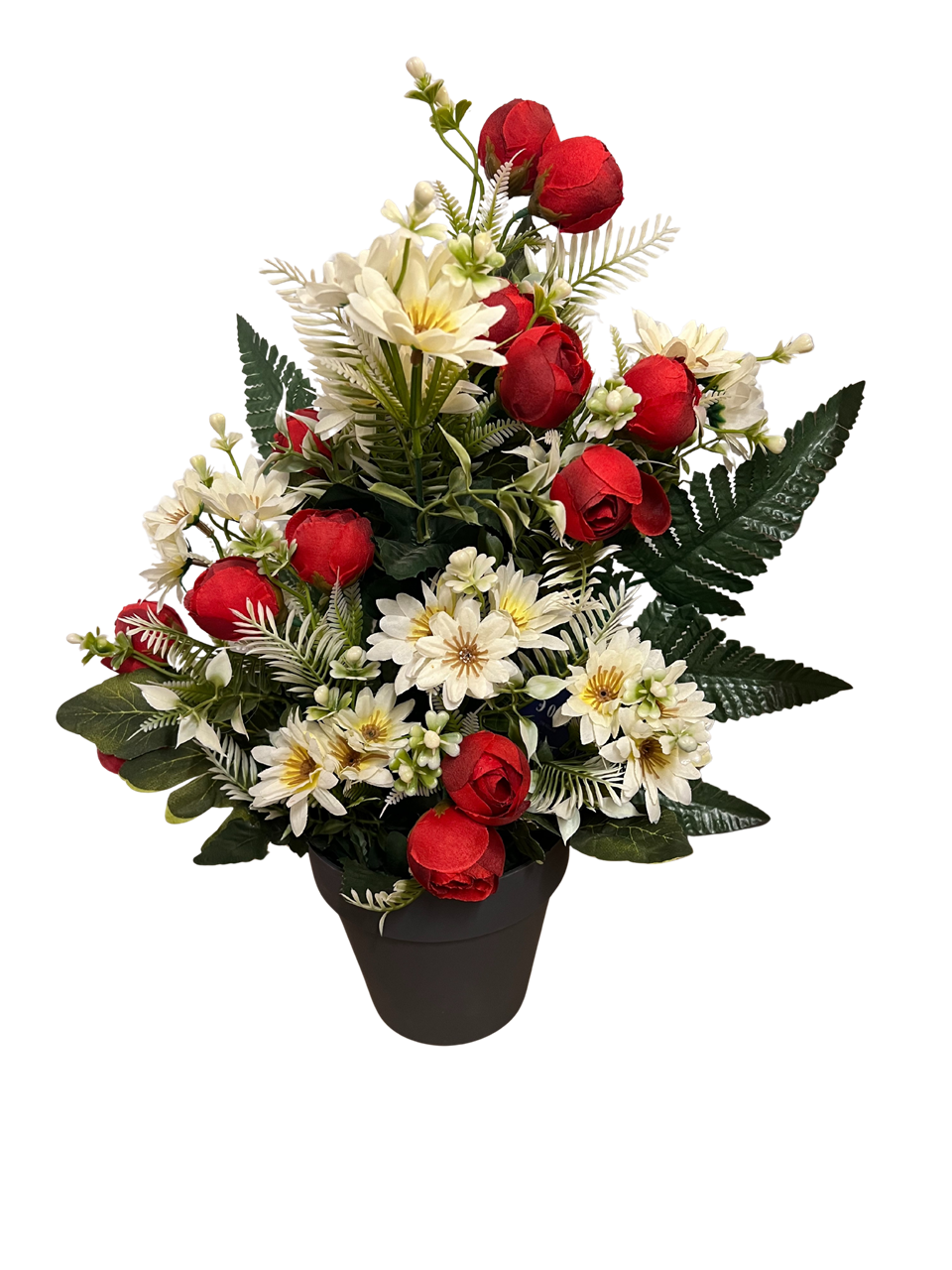 Photo for illustration purposes onlyBoutons de roses et fleurs blanches en pot