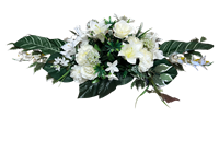 Jardinière lestée avec un beau mélange de fleurs blanches. Environ 1 mètre de longueur.
