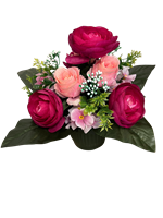 Mélange de fleurs en pot de couleurs rose foncé et rose clair.