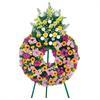 | Couronne sur pieds Toutes les compositions sont disponibles en différents coloris : Blanc / Rouge / Jaune & orange / Rose & violet