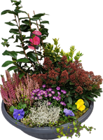 Photo for illustration purposes only | Coupe de plantes Floral La coupe Floral est une composition aux couleurs variées à base de plantes fleuries et de beaux végétaux. Diamètre env. 45 cm
