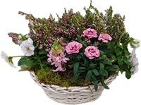 Photo for illustration purposes only | Panier Fleuri Composition de plantes délicates dans un panier.